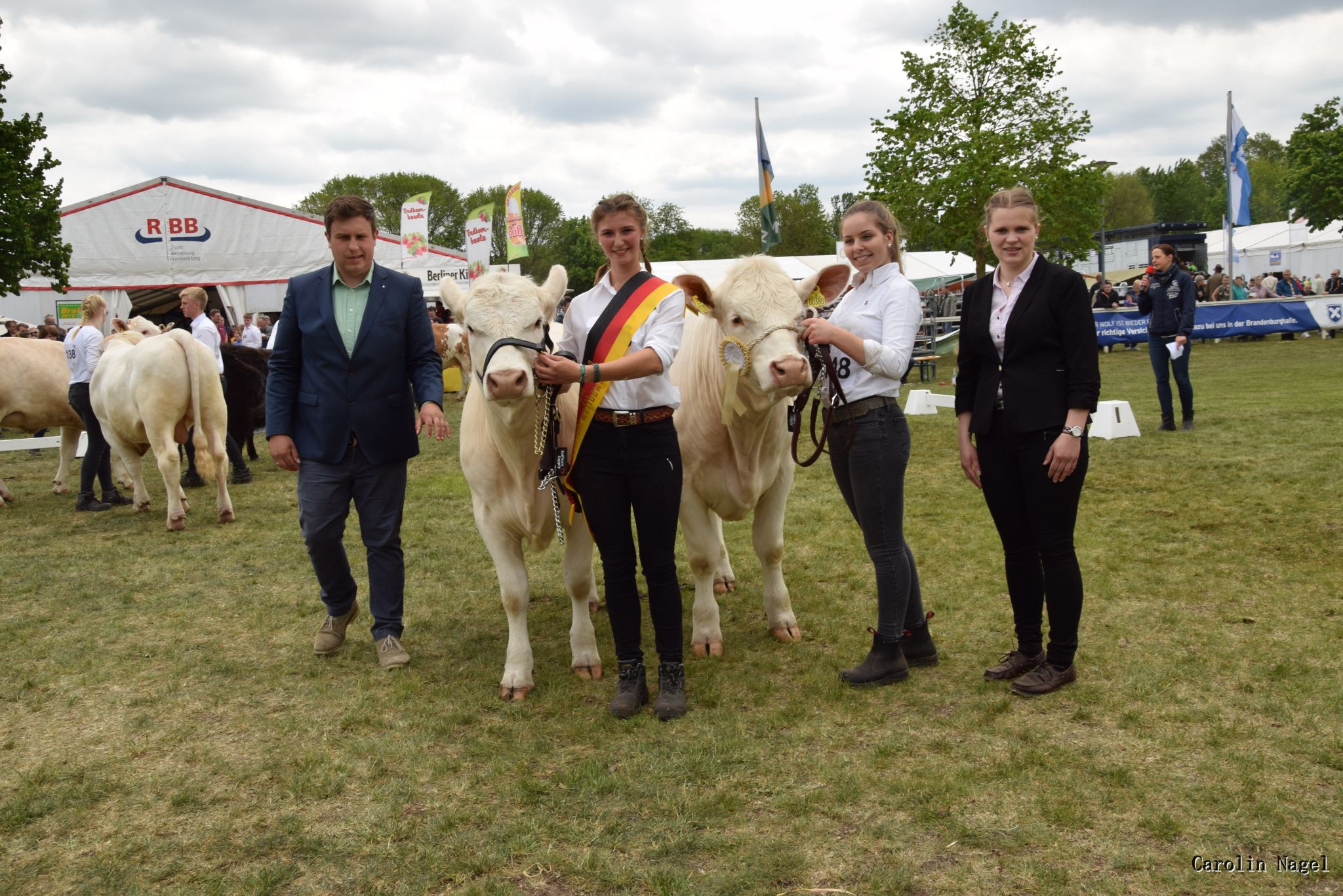 Der Sonntag wurde noch einmal spannend für alle Teilnehmer, Eltern und Betreuer der Teams, denn vormittags trafen sich alle im Großen Ring zur Siegerehrung der Wettbewerbe Tierbeurteilung und Rangieren. Die Bekanntgabe der Grand Champions, sprich die Ehrung der besten Jungzüchter in allen drei Wettbewerben, fand um 14 Uhr im Rahmen des großen Jungzüchter-Schaubildes statt. Dort zogen alle Vorführsieger mit ihren Rindern, die die neuen, gerade gewonnenen Halfter auf hatten, in den Ring. Drumherum verteilten sich die restlichen jungen Menschen. Die Jungzüchter der anderen Tierarten nahmen ebenfalls im Ring Aufstellung. Es wurden alle Jungzüchter, ob Milchrind, Schwein, Schaf oder Pferd begrüßt, bis anschließend Anne Menrath, Geschäftsführerin des Verbandes deutscher Fleischrind- Jungzüchter, das Wort hatte. Nun wurde es nochmal spannend für alle, der Grand Champion in der Altersklasse Jung 2019 ging an Anna Sophie Neitzel aus Sachsen- Anhalt. In der Altersklasse Mittel war Angelina Schmidt, ebenfalls aus Sachsen-Anhalt, unschlagbar und Nadine Reitz aus Brandenburg sicherte sich in der Altersklasse Alt den Grand Champion Titel.