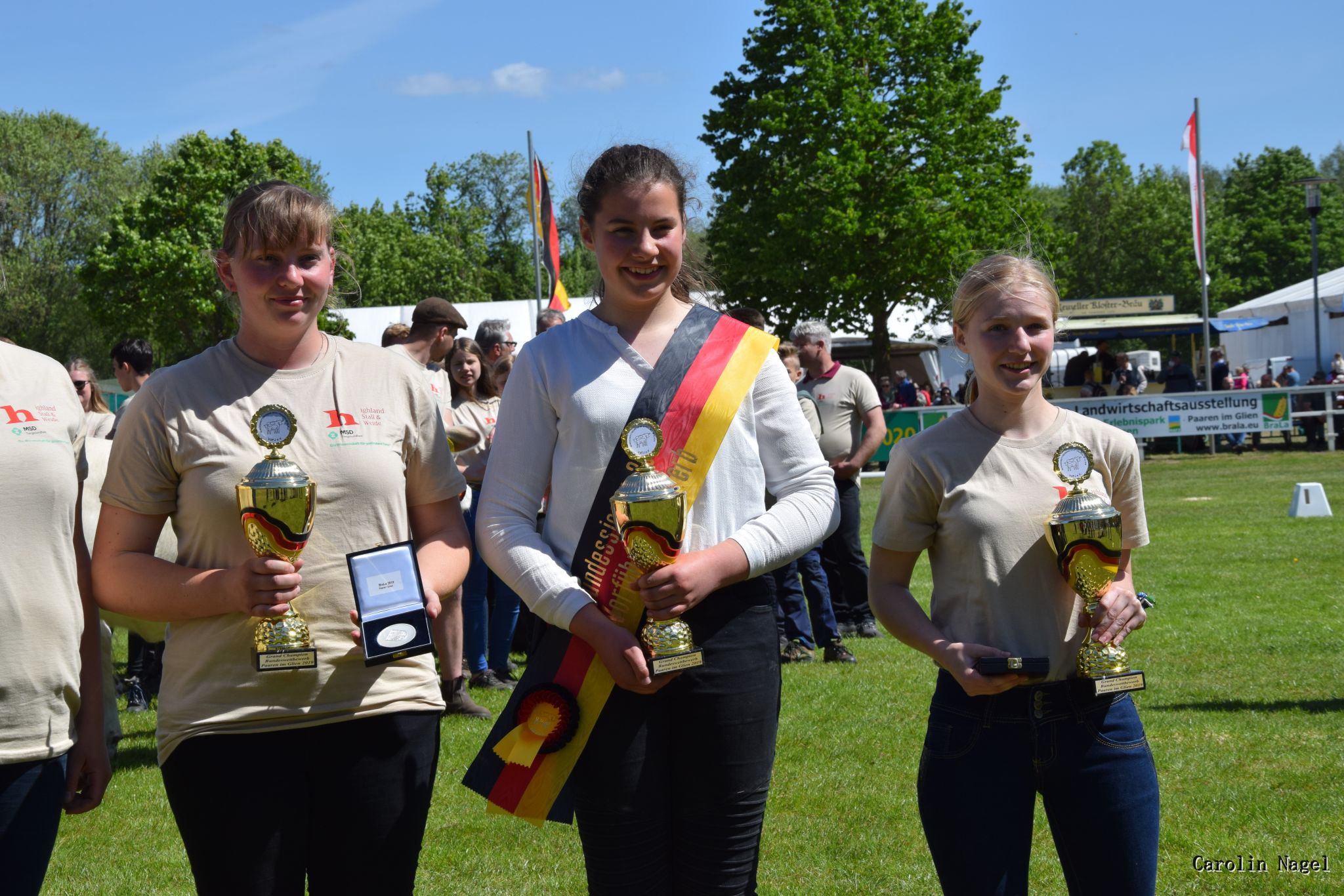 machten es den beiden Richtern nicht leicht und präsentierten sich und die Tiere so professionell, dass häufiger in den einzelnen Klassen ein Tiertausch stattfand. Auch in dieser Altersklasse wurde ein 1b-Platz mit in die Endauswahl genommen. Die Siegerauswahl Alt entschied mit hervorragender Leistung Melissa Einemann aus Niedersachsen zur Vorführsiegerin und Jannik Kastens ebenfalls aus Niedersachsen zum Reservesieger des Tages in dieser Altersklasse. Der spannende und hochklassige Vorführwettbewerb endete gegen 13 Uhr. Vielen Dank an die Preisrichter für ihren tollen Job.
